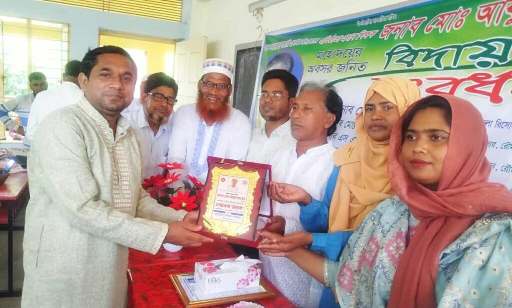 উজান ঝগড়ার চর প্রাথমিক বিদ্যালয়ের প্রতিষ্ঠাতা শিক্ষক আবুল কাশেমকে বিদায়ী সংবর্ধনা