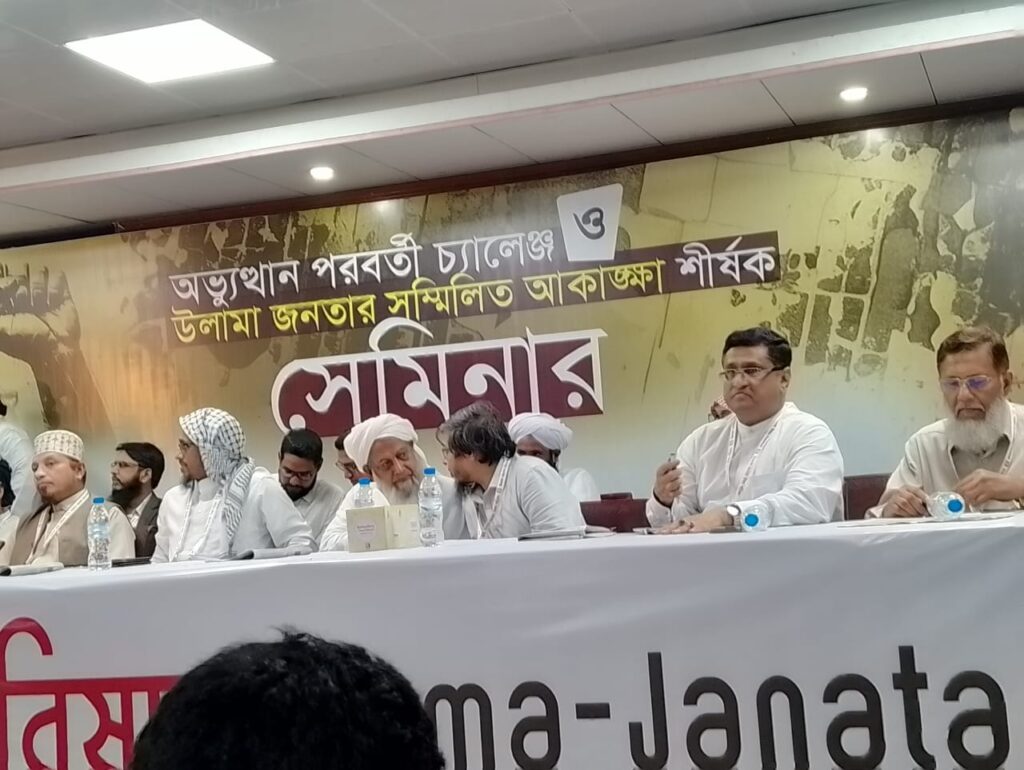 আজ ২১ আগস্ট বৃহস্পতিবার গাজীপুরের একটি স্থানীয় কনভেনশন হলে বিকেলে গণ-অভ্যুত্থানের পরবর্তী চ্যালেন্জ ও উলামা জনতা সমন্বিত আকাংখা শীর্ষক সেমিনার অনুষ্ঠিত হয়।
