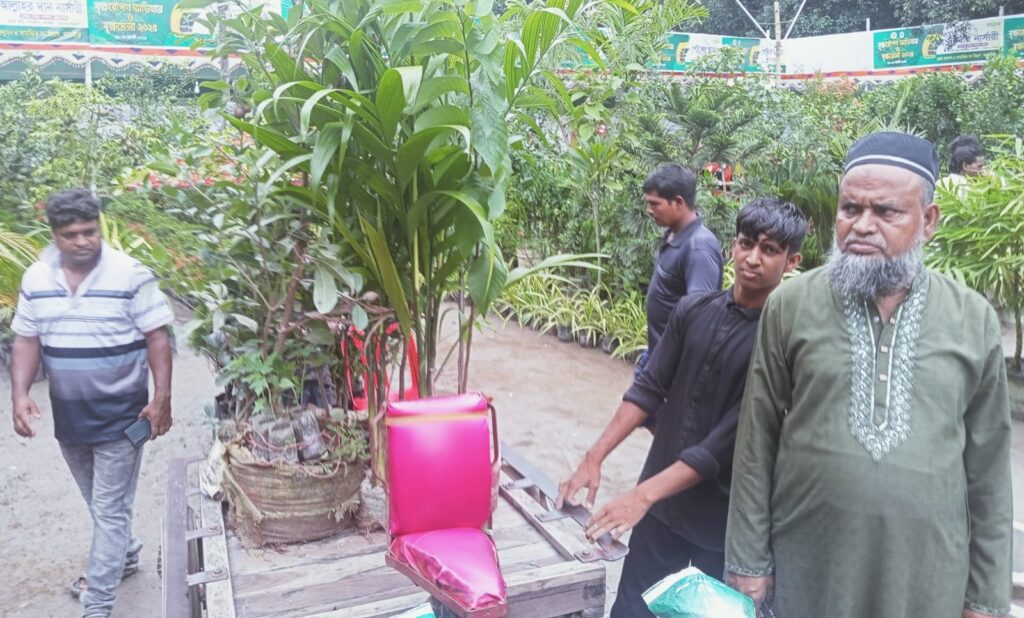 মেলার তৃতীয় দিনে, রবিবার (২৪ আগস্ট) সরেজমিন ঘুরে দেখা গেছে, জেলার বিভিন্ন নার্সারির উদ্যোক্তারা ফলজ, বনজ, ঔষধি ও শোভাবর্ধক গাছের চারা নিয়ে অংশ নিয়েছেন। আম, লিচু, কাঁঠালসহ দেশি ফলগাছের পাশাপাশি রয়েছে দুষ্প্রাপ্য ও সৌন্দর্যবর্ধক নানা প্রজাতির গাছের সমাহার। ক্রেতাদের আগ্রহও লক্ষ্য করা গেছে।