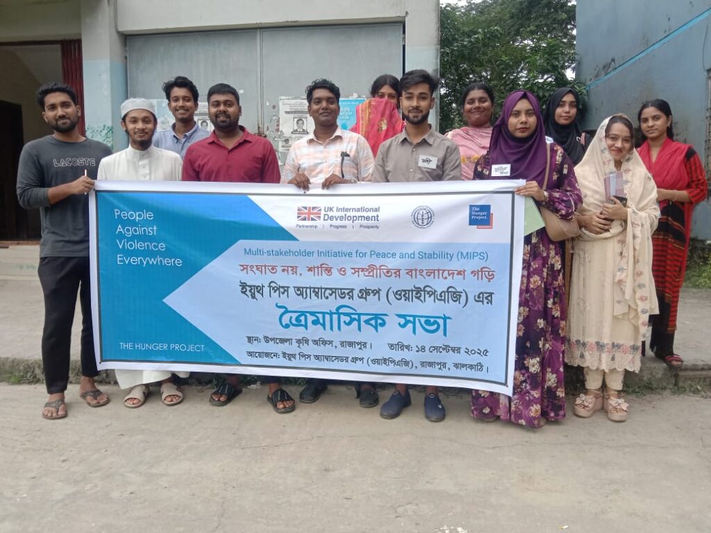 প্রশিক্ষণ ও সভার আয়োজন করে দি হাঙ্গার প্রজেক্ট বাংলাদেশ-এর মাল্টি-স্টেকহোল্ডার ইনিশিয়েটিভ ফর পিস অ্যান্ড স্ট্যাবিলিটি (MIPS) প্রকল্প, যা এফসিডি ‘র আর্থিক সহায়তায় বাস্তবায়িত হয়।
