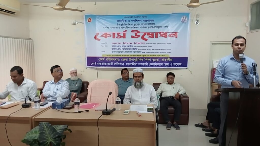 সোমবার (৭ অক্টোবর) সাতক্ষীরা সরকারি টেকনিক্যাল স্কুল ও কলেজের হলরুমে সাতক্ষীরা সরকারি টেকনিক্যাল স্কুল ও কলেজ এর অধ্যক্ষ মুহাম্মদ ফেরদৌস আরেফিন এর সভাপতিত্বে জেলা উপানুষ্ঠানিক শিক্ষা ব্যুরো এর কোর্স পরিচালনায় এবং কোর্স বাস্তবায়নকারী প্রতিষ্ঠান সাতক্ষীরা সরকারি টেকনিক্যাল স্কুল ও কলেজ আয়োজিত অনুষ্ঠানে প্রধান অতিথি হিসেবে বক্তব্য রাখেন, অতিরিক্ত জেলা প্রশাসক (শিক্ষা ও আইসিটি) রিপন বিশ্বাস।