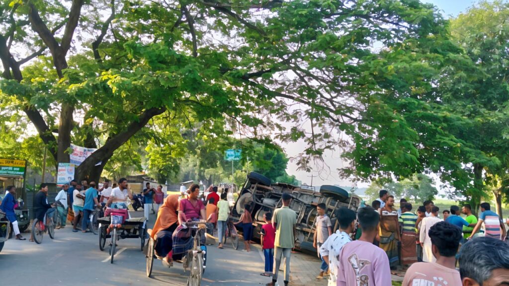 ঠিক সেই সময় বিপরীত দিক থেকে আসা একটি পিকআপ ভ্যান মোটরসাইকেলটিকে সজোরে ধাক্কা দেয়। ধাক্কার তীব্রতায় মোটরসাইকেলটি দুমড়ে মুচড়ে যায় এবং এর আরোহীরা রাস্তায় ছিটকে পড়েন।