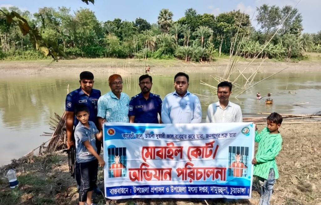 সহকারী মৎস্য কর্মকর্তা ফারুক মহলদার, দামুড়হুদা মডেল থানার এসআই আসাদসহ বাংলাদেশ পুলিশের একটি দল। সকল দপ্তরের সমন্বিত উদ্যোগে এই অভিযান সফলভাবে সম্পন্ন হয়।