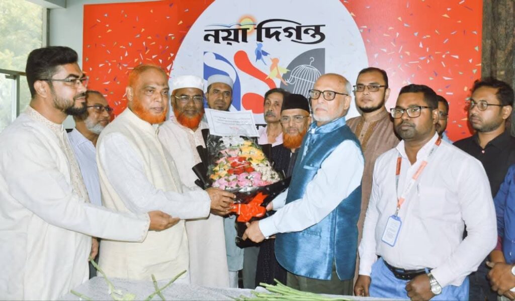 নেতৃবৃন্দ নয়া দিগন্তের সম্পাদক সালাহ উদ্দিন বাবরের হাতে ফুল দিয়ে প্রতিষ্ঠাবার্ষিকীর শুভেচ্ছা জানান।