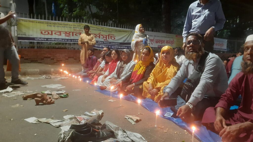 আজ বৃহস্পতিবার (১৩ নভেম্বর) এক থেকে বার তম শিক্ষক নিবন্ধিত নিয়োগ বঞ্চিত শিক্ষকেরা চাকরির জন্য বিভিন্ন সময় দীর্ঘ কয়েক বছর ধরে চাকরির জন্য আন্দোলন করে আসছে। তারা বিগত সরকার আমলেও বেশ কয়েকবার চাকরির জন্য আন্দোলন করেছিলেন। সরকার পতনের পরও বিভিন্ন সময় তারা কয়েকবার আন্দোলন করেছে। কখনো প্রেস ক্লাবের সামনে, কখনো শাহবাগ চত্বরে, কখনো এনটিআরসিএ এর সামনে। চাকরি প্রত্যাশীত নিয়োগ বঞ্চিত শিক্ষকদের আশ্বস্ত করা হলেও তারা বারবারই প্রতারিত হয়েছেন।