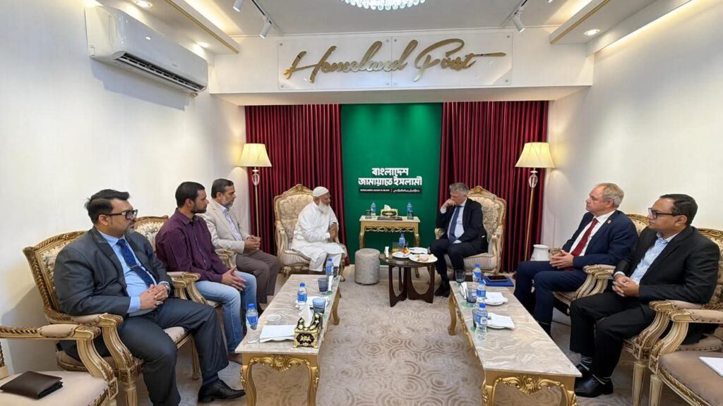 আজ ১৯ নভেম্বর (বুধবার) বিকালে বাংলাদেশ জামায়াতে ইসলামীর আমীর ডা. শফিকুর রহমানের সঙ্গে ঢাকাস্থ নেদারল্যাণ্ডস দূতাবাসের নতুন রাষ্ট্রদূত মান্যবর জোরিস ভ্যান বোমেল এক বৈঠকে মিলিত হন। বৈঠকটি আমীরে জামায়াতের বসুন্ধরার কার্যালয়ে অত্যন্তু আন্তরিকতা ও সৌহার্দ্যপূর্ণ পরিবেশে অনুষ্ঠিত হয়। এ সময় তাঁর সঙ্গে ছিলেন দূতাবাসের ফার্স্ট সেক্রেটারি (পলিটিক্যাল অ্যাফেয়ার্স) মি. কোর স্টাউটেন এবং সিনিয়ির পলিটিক্যাল এডভাইজার মি. লুবাইন মাসুম।