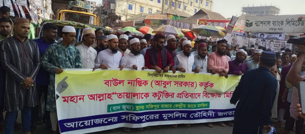 আজ ২৮ নভেম্বর (শুক্রবার) বাদ জুমা গাজীপুরের সফিপুর বাজার কেন্দ্রীয় জামে মসজিদের সামনে থেকে হাফেজ মো আনিসুর রহমান আনিসের নেতৃত্বে আল্লাহকে কটুক্তিকারী বাউল আবুল সরকারের ফাঁসির দাবিতে হাজার হাজার মুসলিম তৌহিদী জনতাকে নিয়ে বিশাল এক বিক্ষোভ মিছিল ও সমাবেশ অনুষ্ঠিত হয়। তারা বাউল আবুল সরকারের ফাঁসির দাবিতে বিভিন্ন স্লোগানে স্লোগানে মুখরিত হয়ে ওঠে। এসময় এলাকাটি উত্তাল হয়ে ওঠে এবং বিক্ষোভে ফেটে পড়ে।