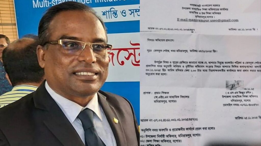 এ সমস্ত তথ্য নির্ভর অভিযোগ সহকারে দৈনিক যশোর বার্তা সহ কয়েকটি স্থানীয়,জাতীয় দৈনিকে ও সোস্যাল মিডিয়ায় প্রকাশ হলে বিষয়টি আমলে নিয়ে মণিরামপুর উপজেলা মাধ্যমিক অফিসার মোঃ জিল্লুর রশীদ স্বাক্ষরে গত ২৫/১১/২৫ইং(মঙ্গলবার) অভিযুক্ত প্রধান শিক্ষক এম এ মান্নান’কে প্রাথমিকভাবে শোকজ করে চলতি মাসের ৩০ তারিখে এ ব্যাপারে কারন দর্শানো নোটিশ প্রদান করেছে সংশ্লিষ্ট কর্তৃপক্ষ।