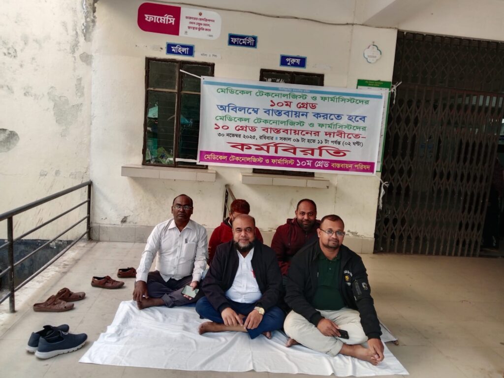 মেডিকেল টেকনোলজিস্ট ও ফার্মাসিস্ট কর্মচারিদের বেতন-ভাতা ১০ম গ্রেডে উন্নিত করার দাবিতে দেশব্যাপী মেডিকেল টেকনোলজিস্ট ও ফার্মাসিস্ট ১০ম গ্রেড বাস্তবায়ন পরিষদের ডাকে যশোরের মণিরামপুর উপজেলা স্বাস্থ্য কমপ্লেক্সের আউটডোরে ২ ঘন্টার কর্মবিরতিতে চরম ভোগান্তিতে পড়তে হয়েছে উপজেলার বিভিন্ন প্রান্ত হতে সেবা নিতে আসা রোগী ও তার স্বজনদের বলে অভিযোগ করেছেন একাধিক ভুক্তভোগীরা।