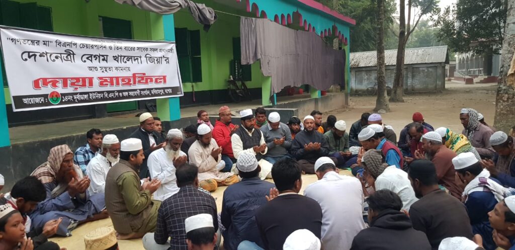 ২ ডিসেম্বর মঙ্গলবার বাদ আসর মাস্টার ইসমাইল হোসেন এতিমখানা ও হাফিজিয়া মাদ্রাসা মাঠে এ দোয়া মাহফিলের আয়োজন করা হয়। স্থানীয় নেতাকর্মীসহ দলমত নির্বিশেষে এলাকার সর্বস্তরের মানুষ এতে অংশগ্রহণ করে বেগম জিয়ার রোগমুক্তি ও দীর্ঘায়ু কামনা করেন।