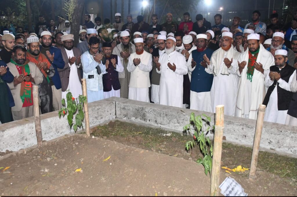 ঢাকা বিশ্ববিদ্যালয়ের কেন্দ্রীয় জামে মসজিদে ফজরের সালাত আদায়ের পর আমীরে জামায়াত নেতা-কর্মীদের সঙ্গে নিয়ে কবর জিয়ারত করেন এবং মহান আল্লাহর দরবারে শহীদ ওসমান হাদির রূহের মাগফিরাত ও শাহাদাত কবুলিয়াতের জন্য দো’য়া করেন।