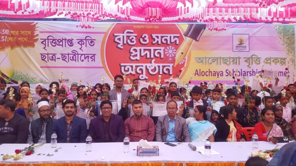 A well-known social organization of Manirampur upazila, Alochhaya Social Welfare Organization, has awarded scholarships and certificates to meritorious students. The organization has long been working for social development by providing educational scholarships and standing beside underprivileged people.