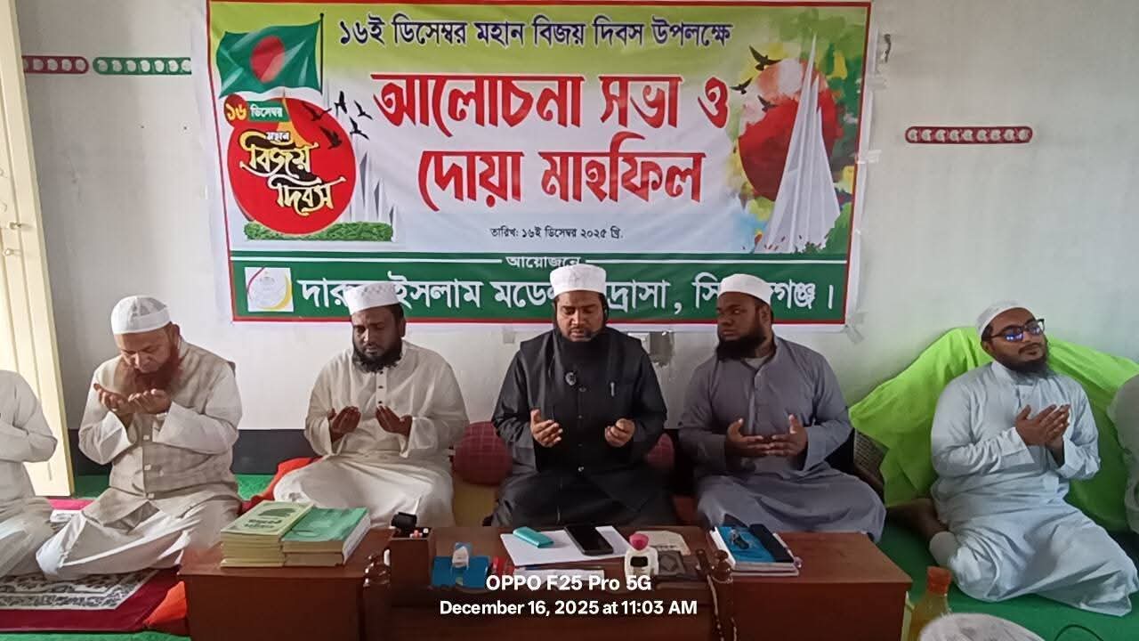 মহান বিজয় দিবস উপলক্ষে সিরাজগঞ্জে দারুল ইসলাম মডেল মাদ্রাসায় আলোচনা সভা ও দোয়া মাহফিল